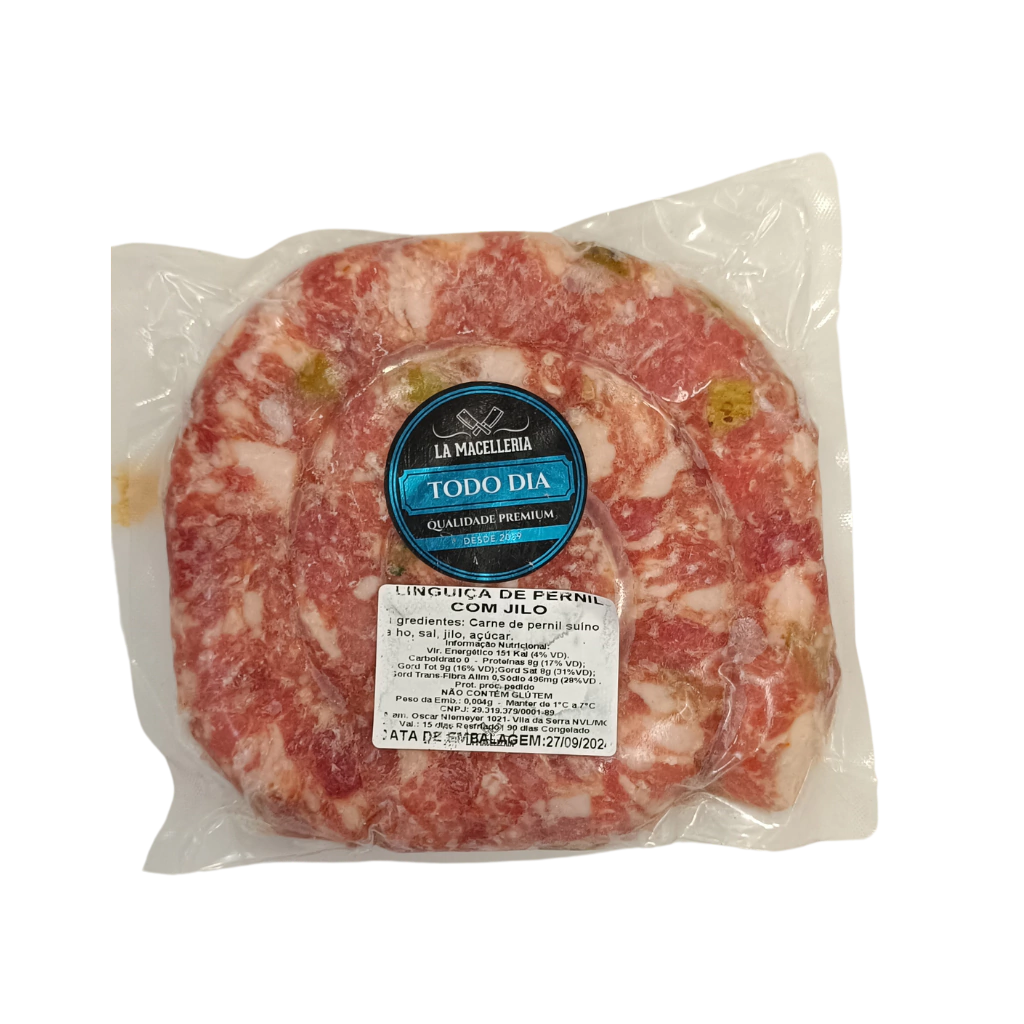 Linguiça suína, 100% de pernil, de fabricação artesanal, de altissima qualidade. Otima para seus churrasco especiais, na chapa ou no forno.